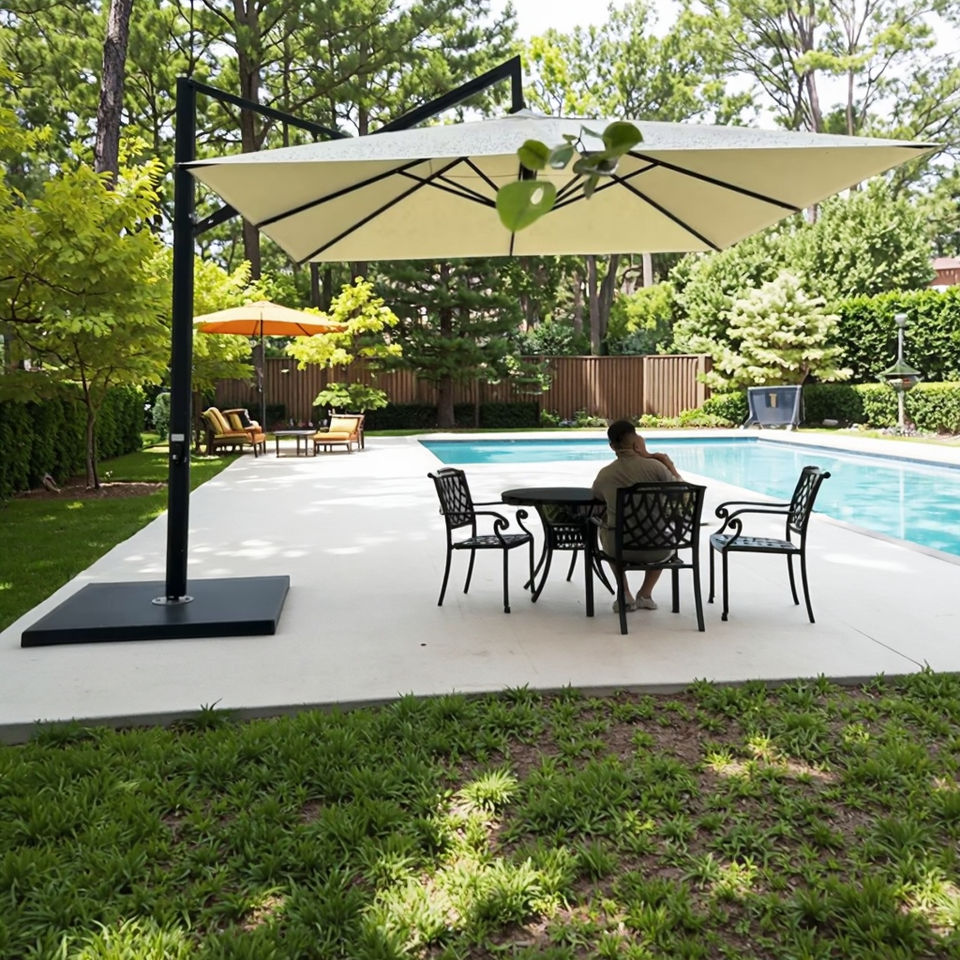Lumière LED Parasol Professionnel Luxueux Simulé Plage Parasol Jardin Extérieur Parapluie pour Restaurant