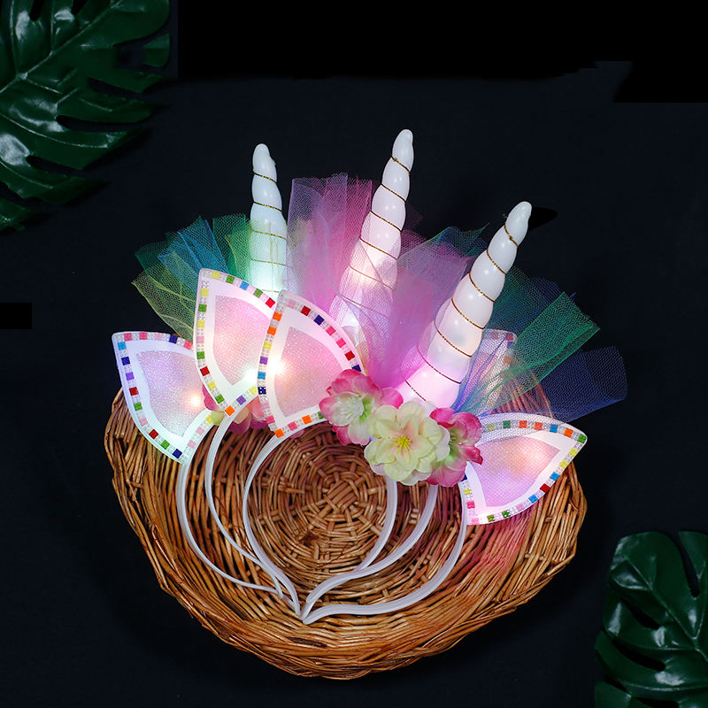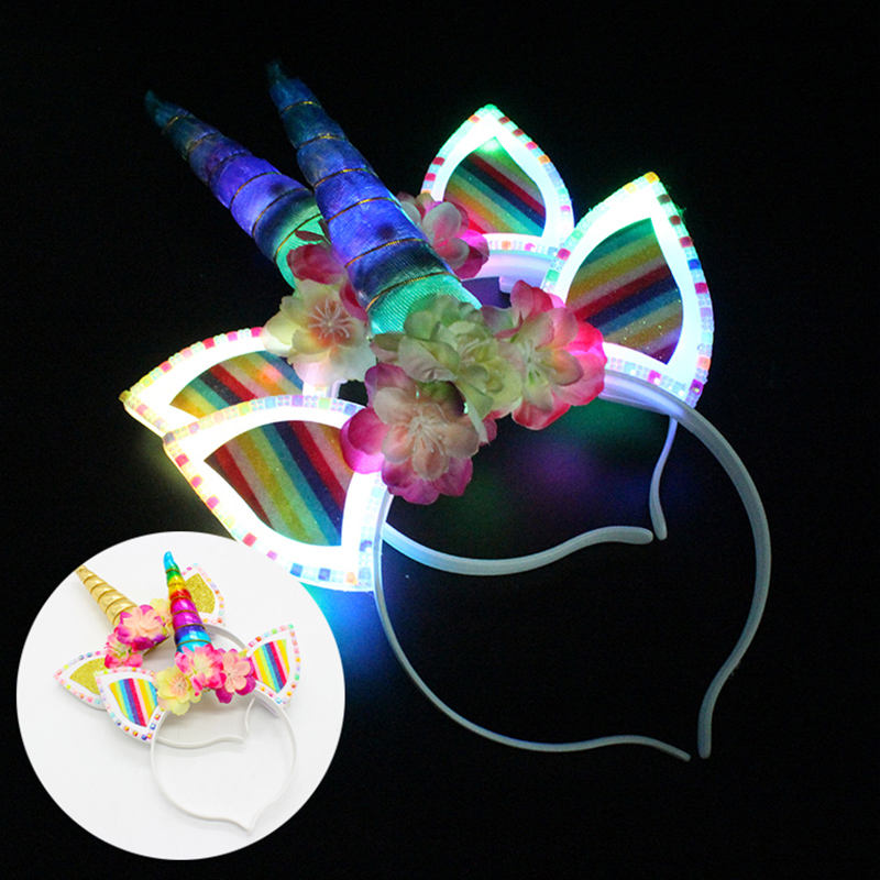 Bandeau de licorne lumineux à LED pour enfants et adultes, design brillant et fantaisie, pour les fêtes et les festivals.