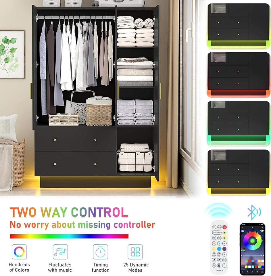 Armoire à lumière LED Placard avec miroir Armoire intelligente Armoire à tiroirs et étagères suspendues Placard