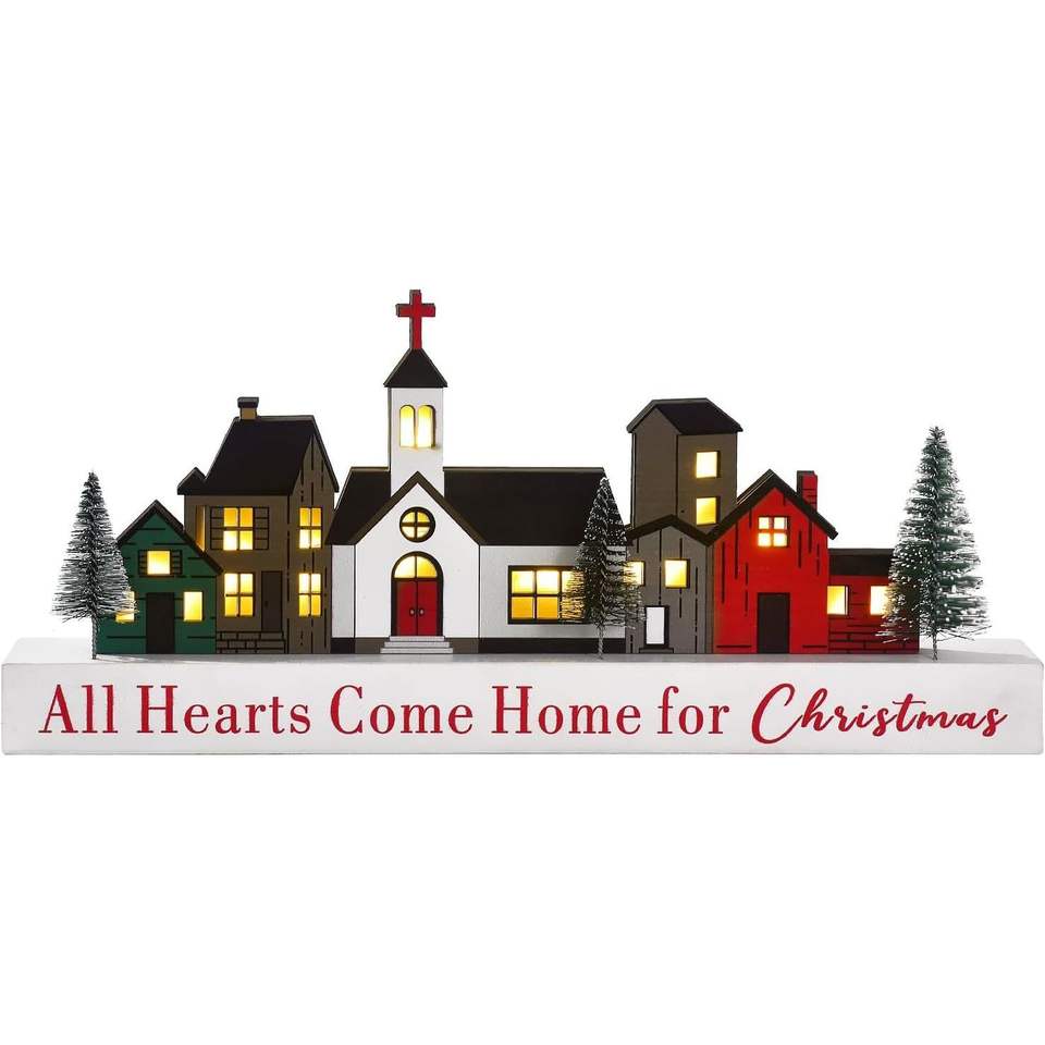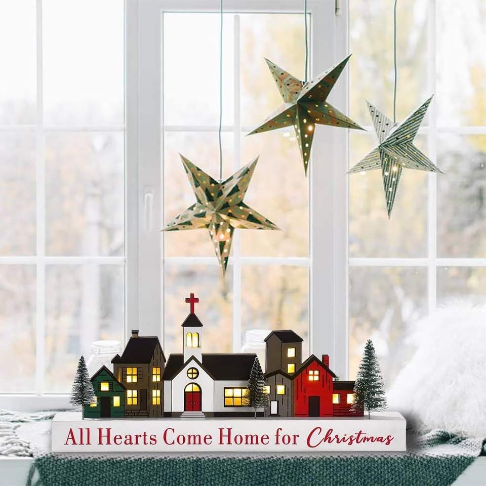 Panneau de Noël rustique en bois avec éclairage LED, décoration de village de Noël style ferme pour fête de Noël, lumières de Noël