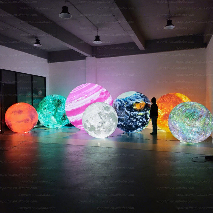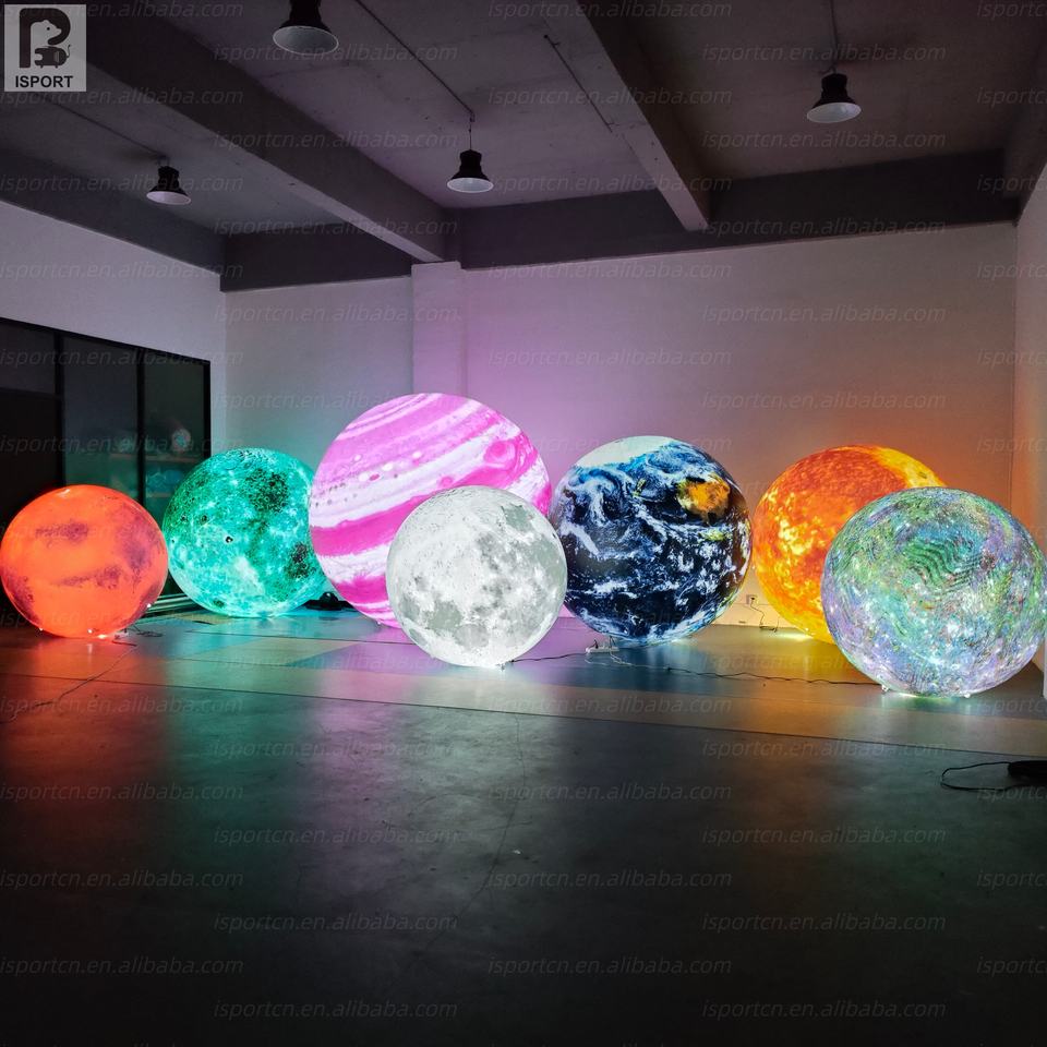 Décoration lunaire géante gonflable bleue à LED, éclairant l'espace, pour musée scientifique/événement nocturne/fête sur le thème de l'espace cosmique