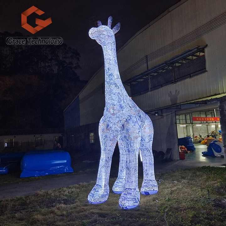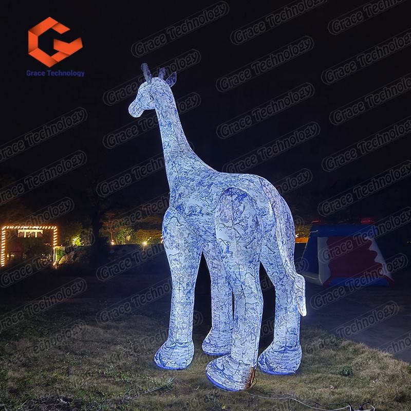 Type:Girafe gonflable, Girafe gonflable, Girafe gonflable lumineuse à LED, Modèle de girafe en porcelaine bleue et blanche, Ballons Animaux Gonflables pour Exposition Extérieure