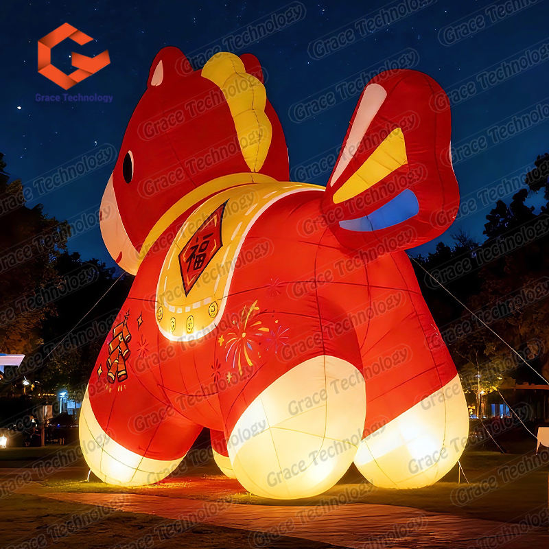 Cheval gonflable lumineux à LED, mascotte animale, modèles de chevaux gonflables personnalisés pour la décoration du Nouvel An