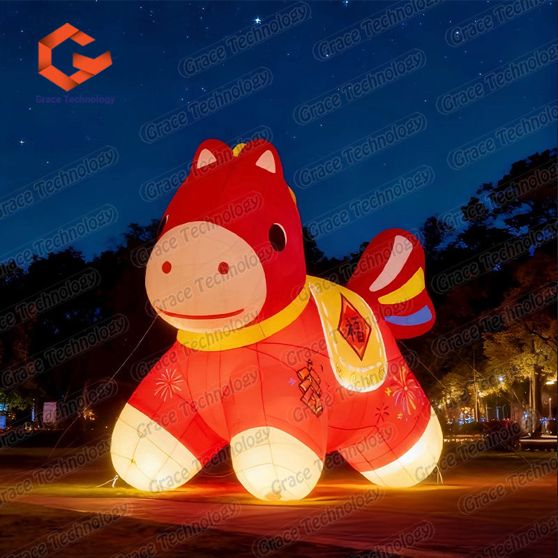 Nom:Mascotte animale cheval gonflable avec éclairage LED