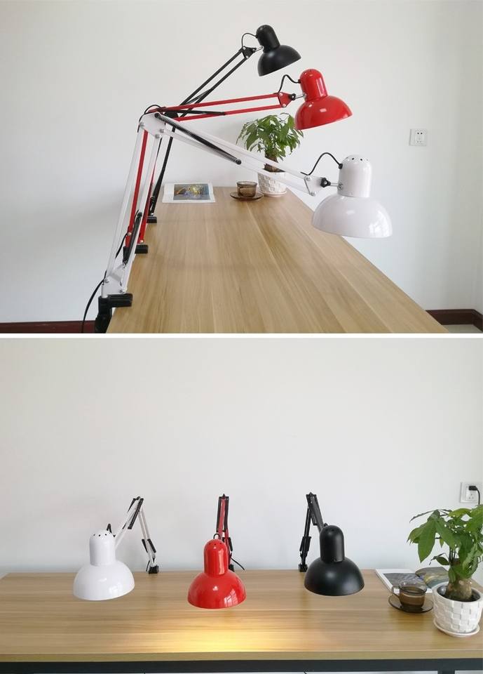 Lampe LED à ongles et cils à bras long avec abat-jour en métal Corps en fer E26 Base AC Power Photo Clip Bedside Study Work Repair Tattoo