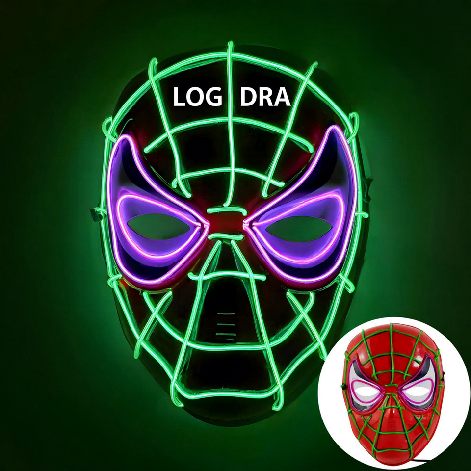 Masques de fête lumineux LED qui brillent dans le noir pour Halloween PVC Spiderman pour Avengers Masquerade