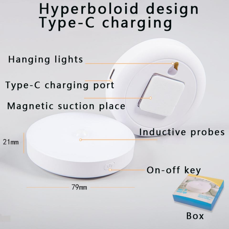 Lampe de nuit à détecteur de mouvement sans fil magnétique à LED, rechargeable par USB, batterie intégrée, lumières de placard pour chambre à coucher, escalier, pièce