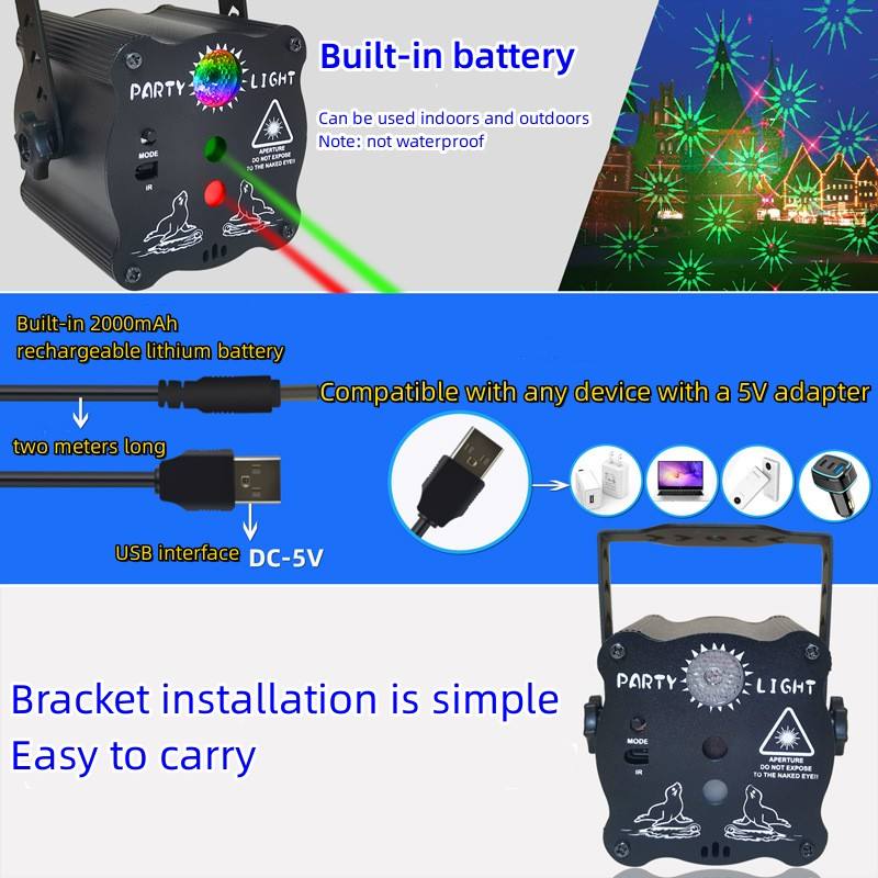 Mini lampe laser à LED rechargeable par USB 60-en-1 pour fête de Noël, scène DJ, lumière d'ambiance rotative clignotante