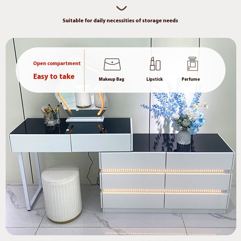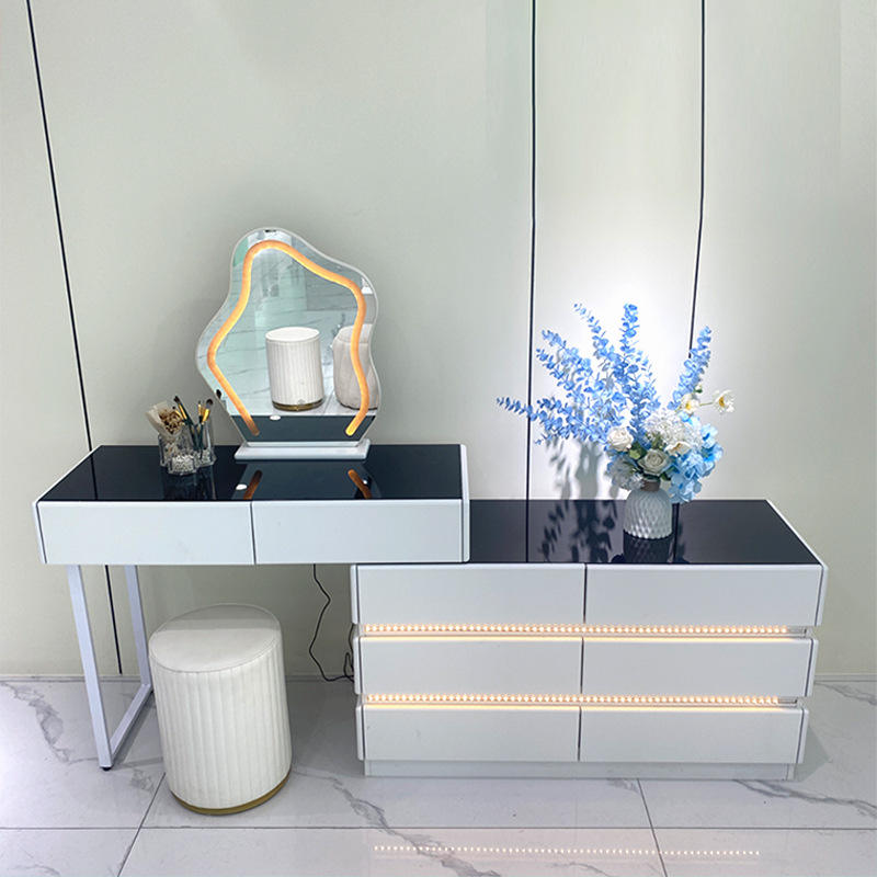 Coiffeuse à LED de style moderne et simple Coiffeuse éclairée Bureau de maquillage avec placard intégré Panneau en bois pour chambre à coucher