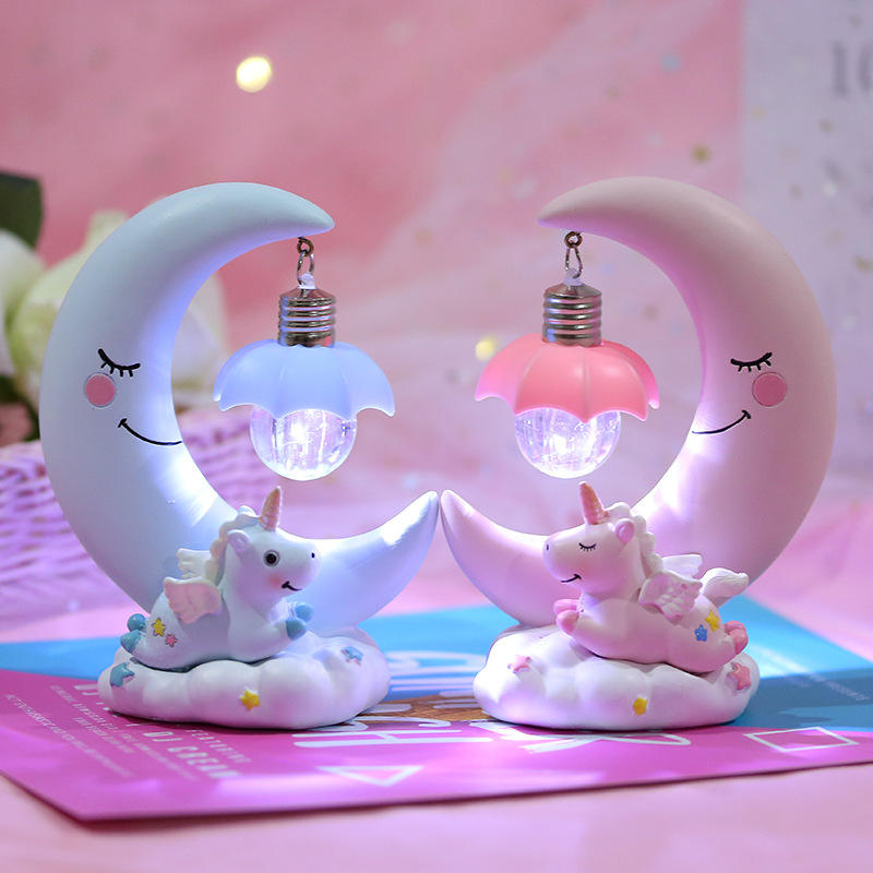 Veilleuse LED Licorne Lune Résine Cartoon Veilleuse Chambre à coucher Enfants Vacances Cadeau de Noël