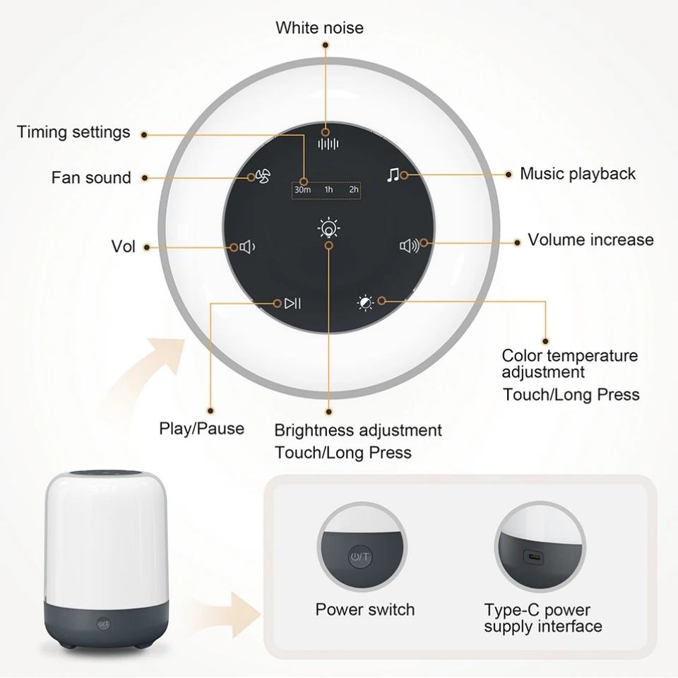 Veilleuse LED et machine à bruit blanc mini pour bébé, avec éclairage blanc chaud/blanc pur, intensité réglable et programmable pour le sommeil