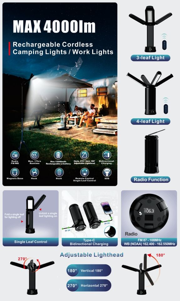 Nom du produit:Lumières de camping de LED/lumières rechargeables de travail