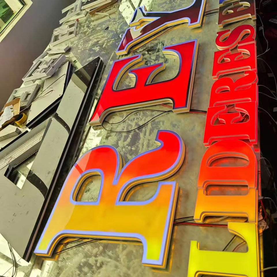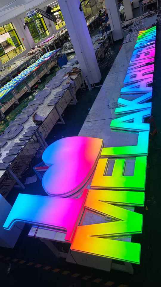 Signalisation extérieure LED avec lettrage lumineux coloré pour la publicité et la décoration avec lumière au néon et bandes LED