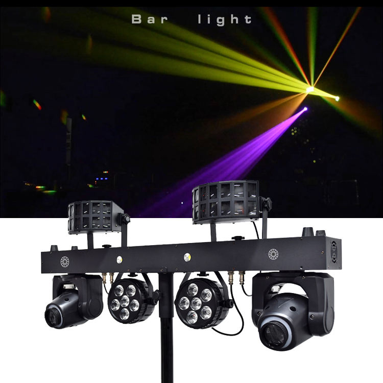 Kits de système d'éclairage de barre de fête à LED derby stroboscope tête mobile par 4 en 1 éclairage DJ avec support T bar éclairage de scène à LED