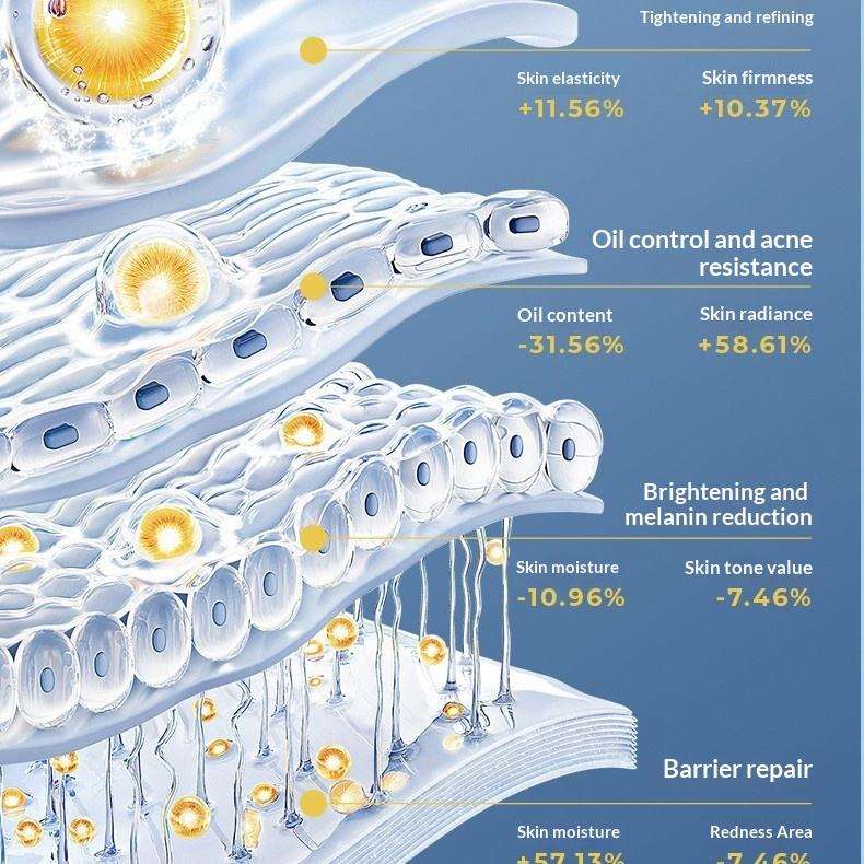 Nettoyage, blanchiment, réparation après-soleil, rajeunissement de la peau, éclaircissementCaractéristique