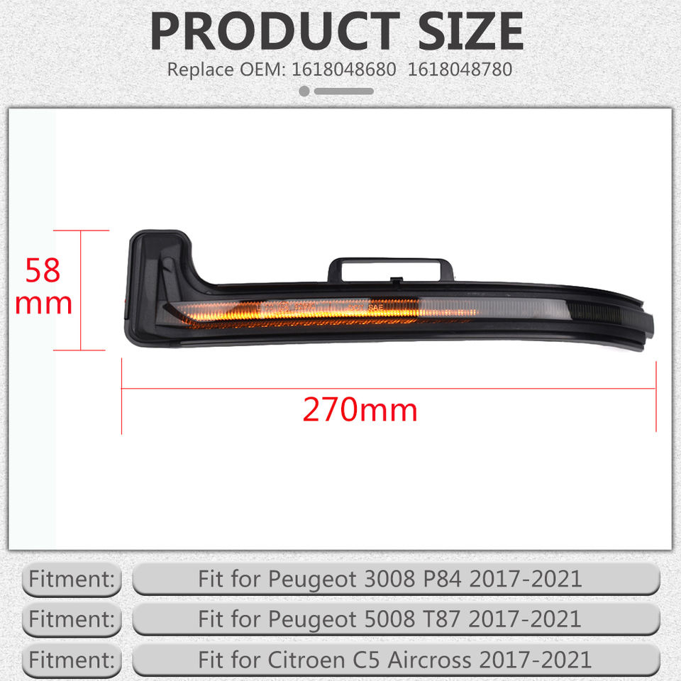 Voyant de rétroviseur à LED pour Peugeot 3008 5008 T87 2017-2021Citroën C5 Aircross Dynamic Turn Signal Lamp