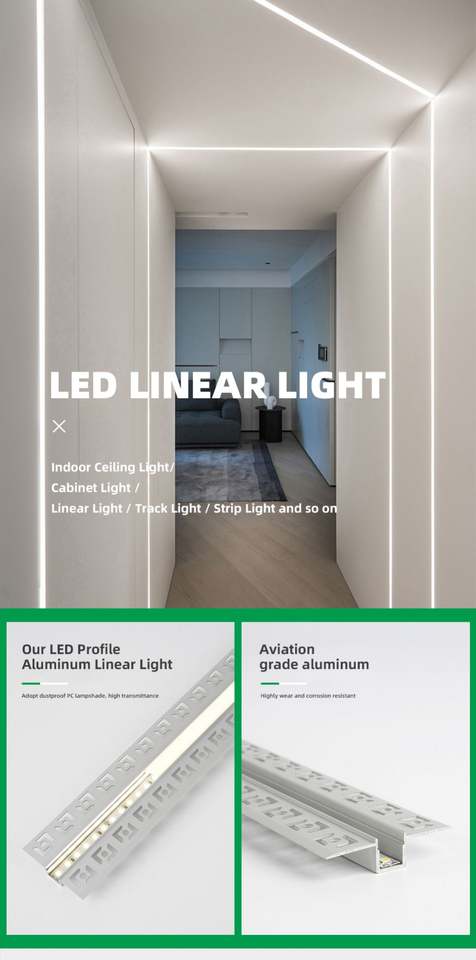 Profilé en aluminium LED encastré pour éclairage linéaire LED/bande LED/plafond LED