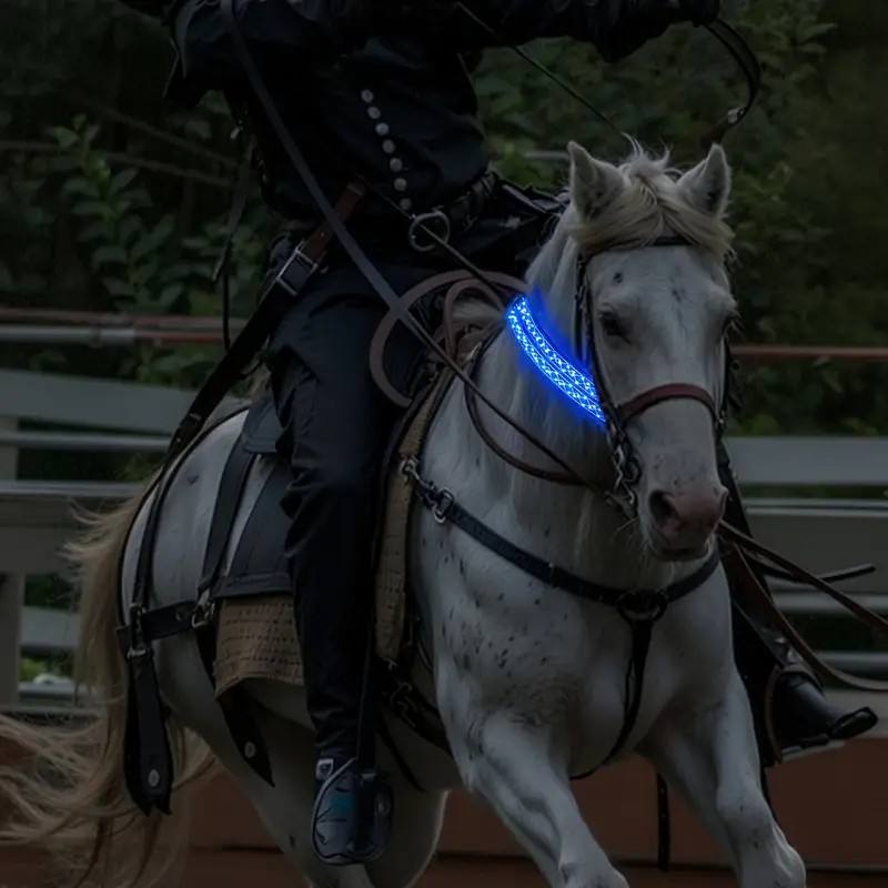 Collier de cheval en polyester solide et luxueux, rechargeable par LED, réglable, durable, avec lumière pour une utilisation nocturne