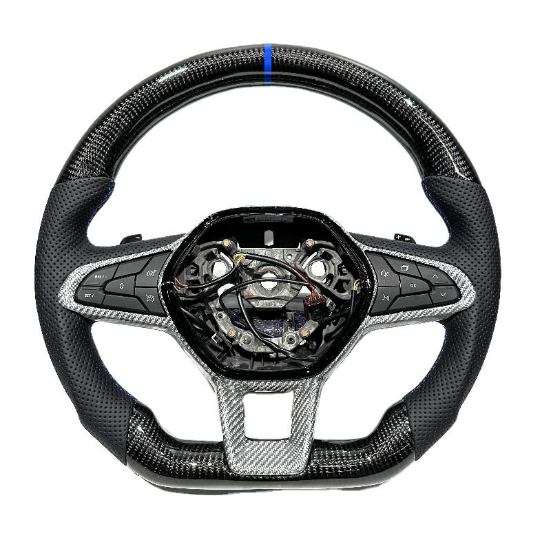 Volant en fibre de carbone forgée rouge LED avec matériau Alcantara, adapté aux modèles Renault Clio 3, 4, 5, personnalisable.