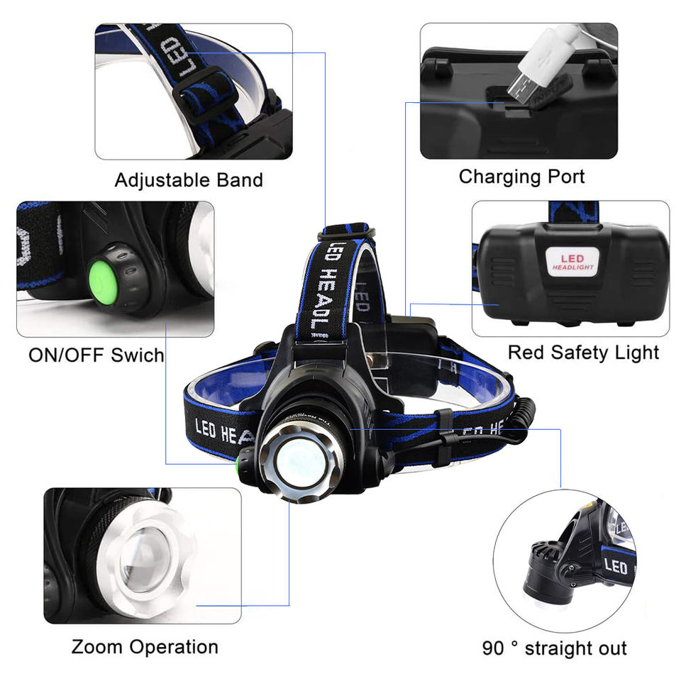 Lampe frontale de sécurité à LED rouge Lampe frontale de nuit Lampe frontale de camping rechargeable étanche