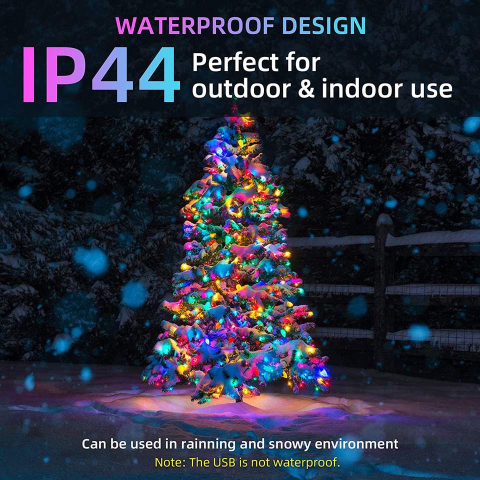 Guirlandes lumineuses LED d'extérieur RGB avec télécommande, guirlandes lumineuses féériques à brancher avec 200 LED, matériau PVC super durable, 220V