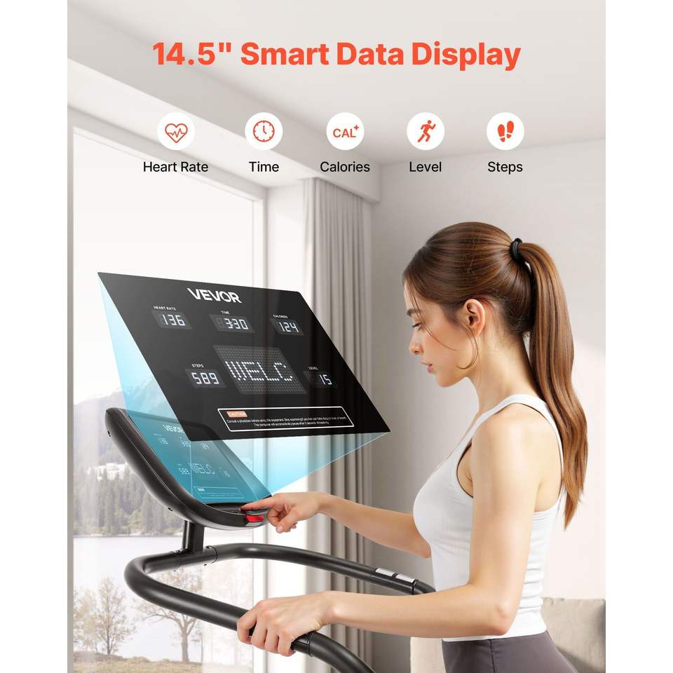 Appareil de marche sur les marches d'escalier à écran LED pour la maison, escalade continue, 15 niveaux de vitesse, charge maximale 330 lb, 28-