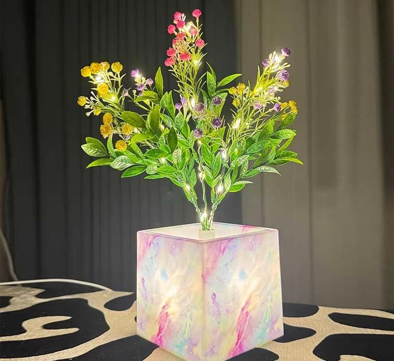Lampe de nuit LED décorative en forme de pot de fleurs, ambiance lumineuse, rose, tournesol, marguerite, arbre