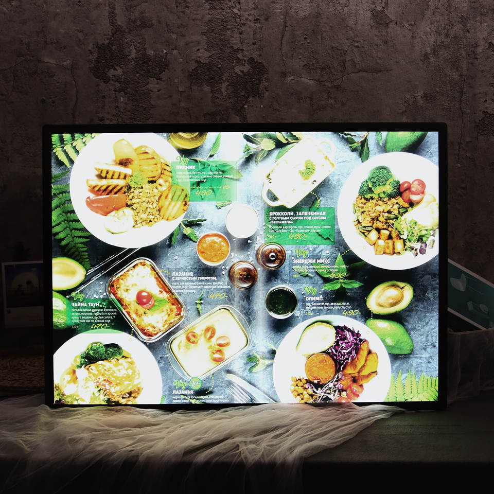Cadre lumineux LED mural pour menu, boîte lumineuse pour la publicité dans les restaurants