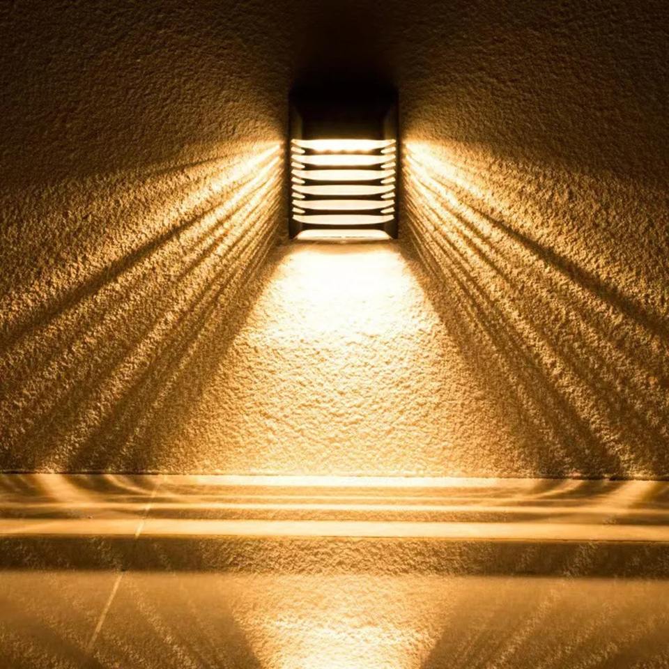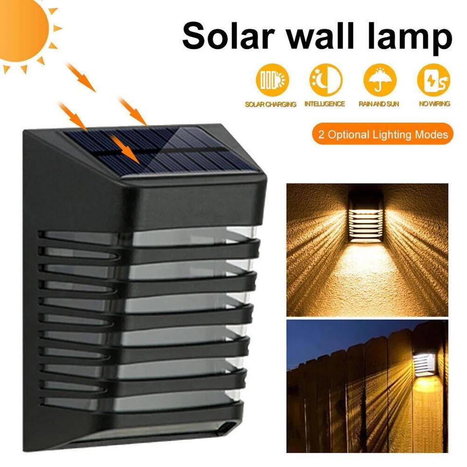 Lampe solaire LED pour clôture, IP54, étanche, pour extérieur, murale, mode respiration/continu, idéale pour jardin, escalier, allée, cour.