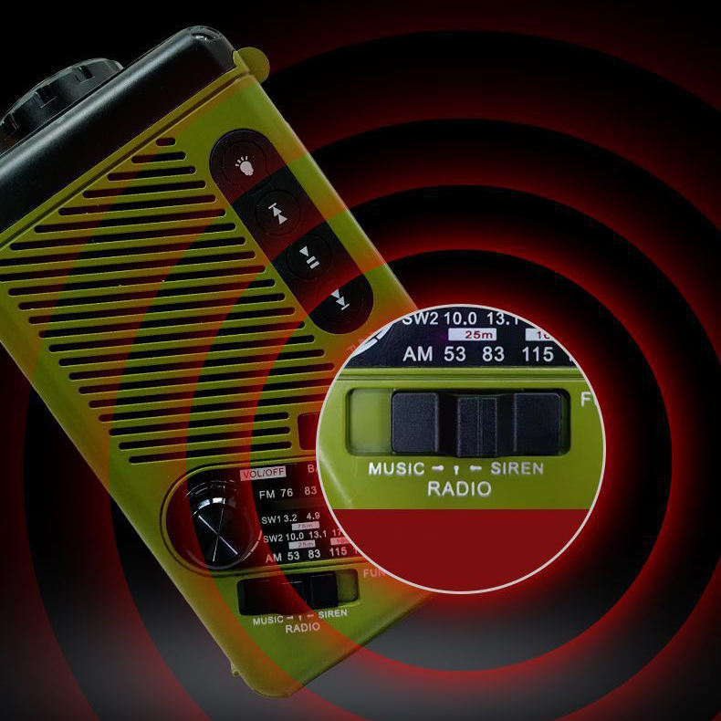 Radio am/fm, Radio d'urgence, Banque de puissance, Haut-parleur, Lecteurs mp3