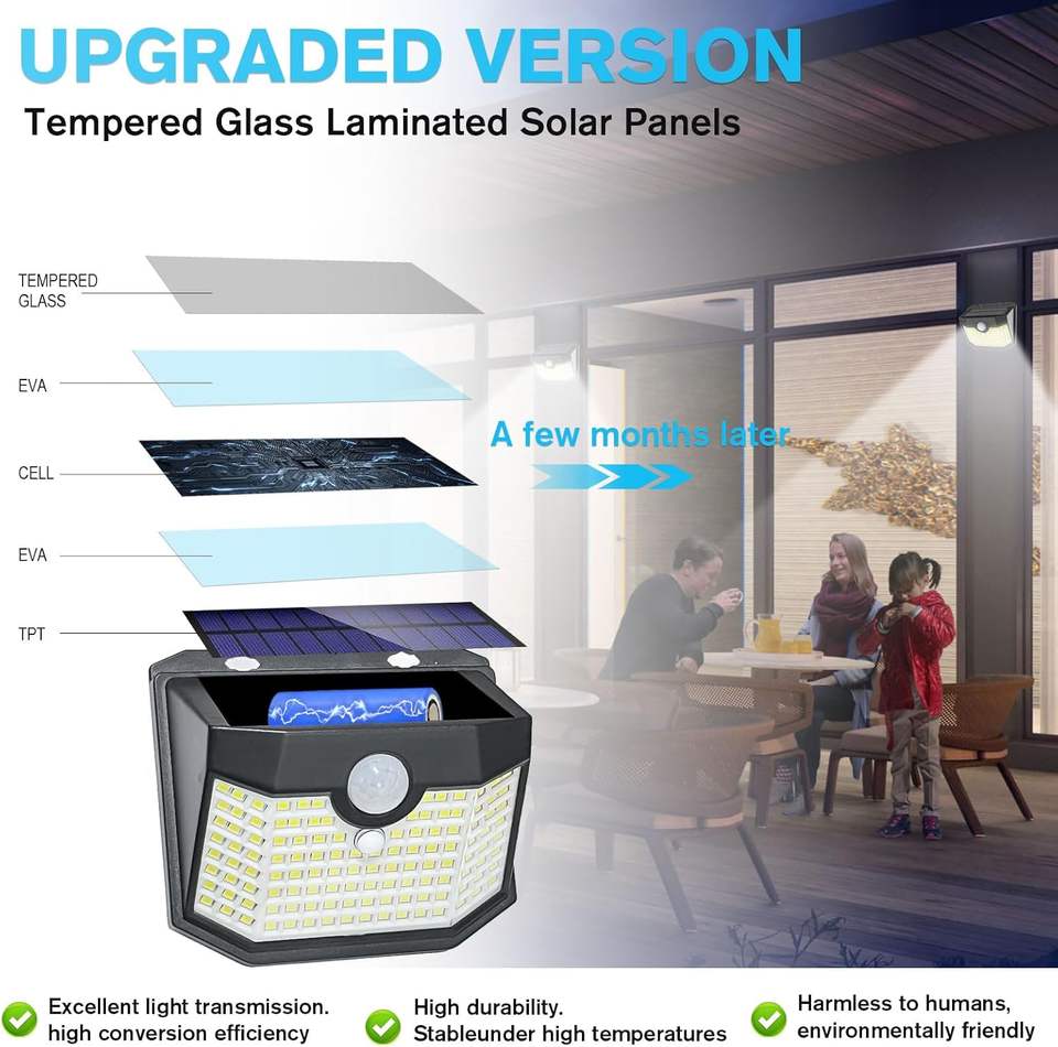 Lampe solaire à LED pour l'extérieur Lampe solaire à détecteur de mouvement IP65 Lampe murale étanche Lampe solaire alimentée par la lumière du soleil pour jardin, cour et patio