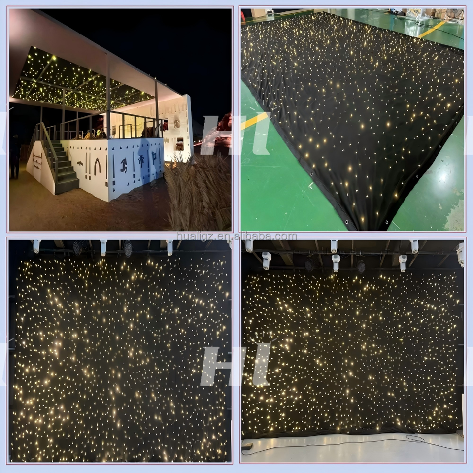 LED Starry Fabric Backdrop with LED Matrix Light Blue Warm White Cool White for Theme Park Wedding Events