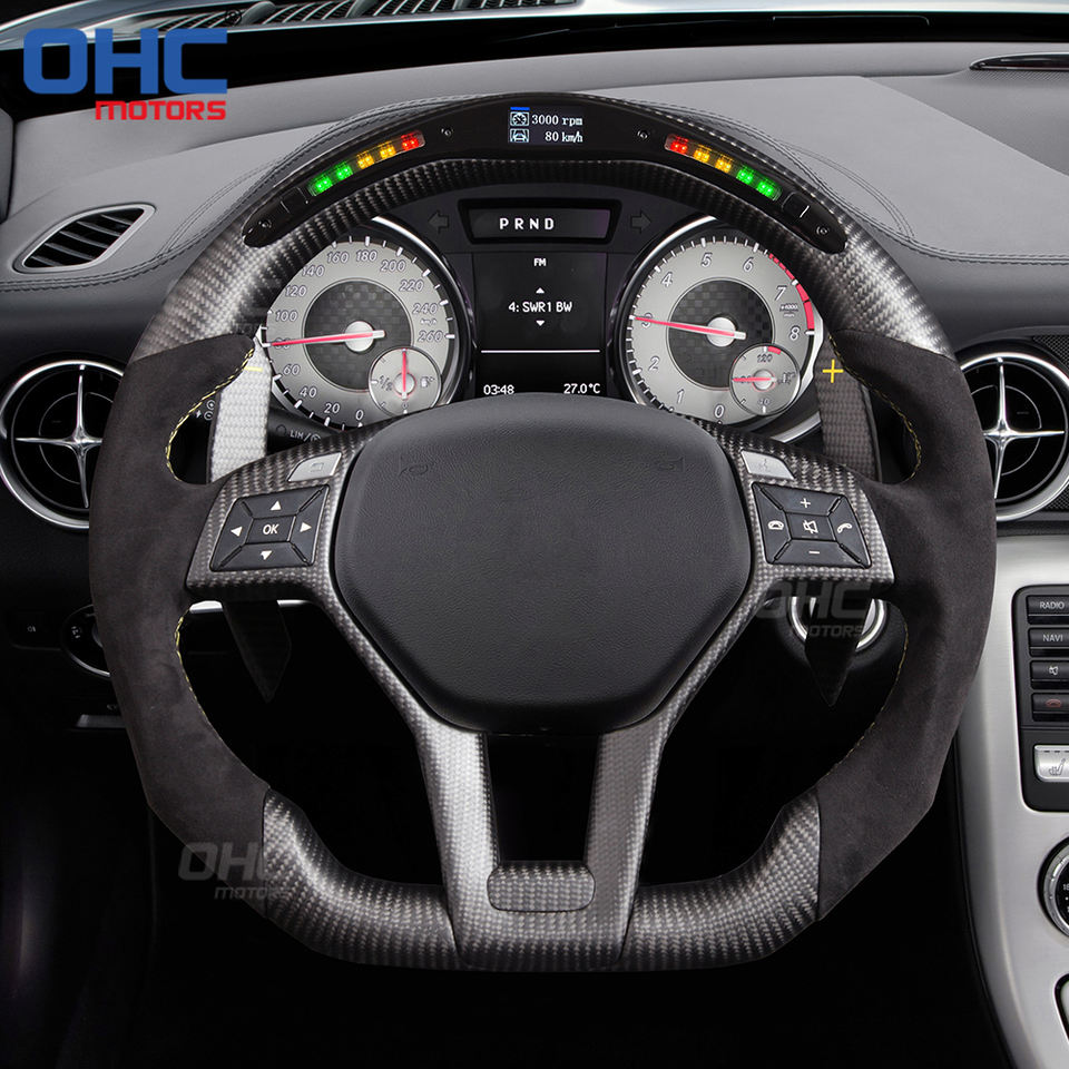 Volant LED pour Mercedes AMG C63 W204 W205 CLA 45 C117 CLS 63 C218 W211 W212 W213 R231 W207 W176 GLK CLA AMG en Fiber de carbone