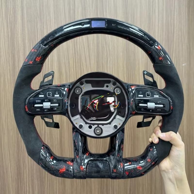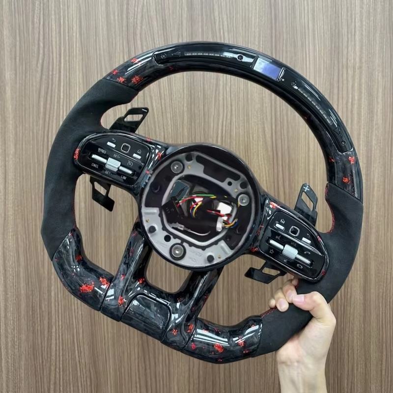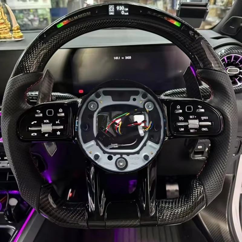 Volant en cuir perforé en fibre de carbone style LED pour Mercedes Benz a B C E G S Class GLA GLB GLE W222 W447 EQA EQB AMG
