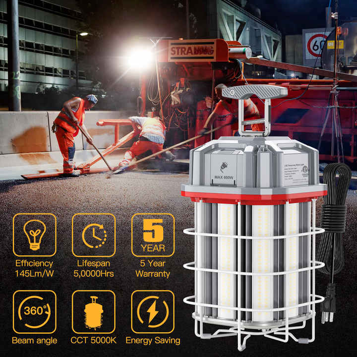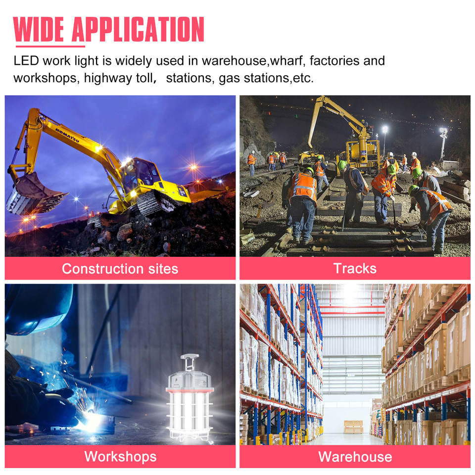 Lampe de travail temporaire LED 10ft Plug-in Cord & Hook 21000 Lm 5000K 100 ~ 277V Luminaire lampe de travail travail industriel lampe de construction