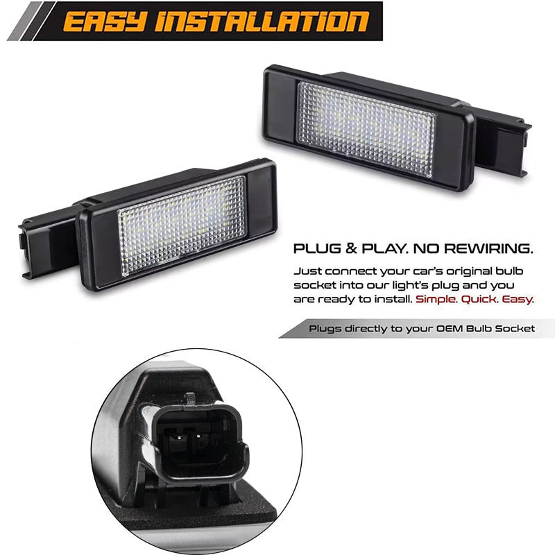Feux de plaque d'immatriculation blancs à LED pour 2007- Peugeot 207 CC 308 MK2 208 2008 3008 508 Tag Lamp Assembly Replacement