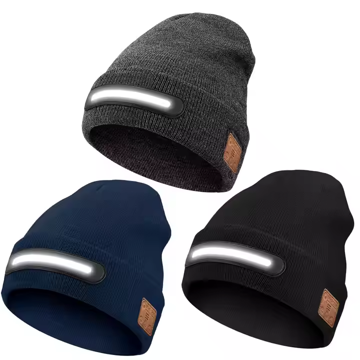Chapeau musical sans fil à DEL Chapeau lumineux avec écouteurs Bt Lampe frontale rechargeable Casquette de camp technique pour les travailleurs de nuit Coureurs