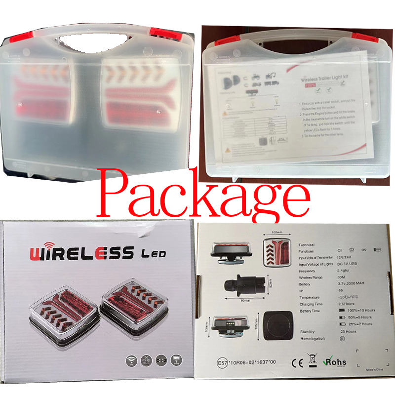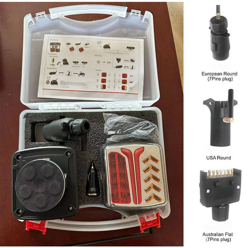 Kit de Feux Arrière LED Sans Fil Magnétiques 12-24V E9 Étanche pour Remorque – Feux de Position, Clignotants et Feux Stop