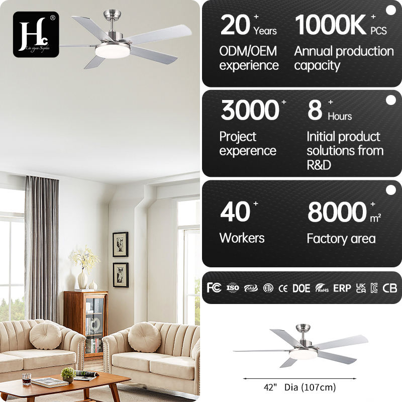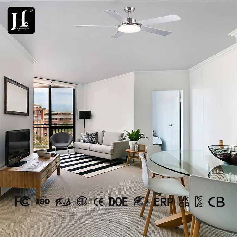 Ventilateur de plafond LED de marque OEM, 58 pouces, en panneau de fibres à densité moyenne, BLDC, à économie d'énergie, avec télécommande