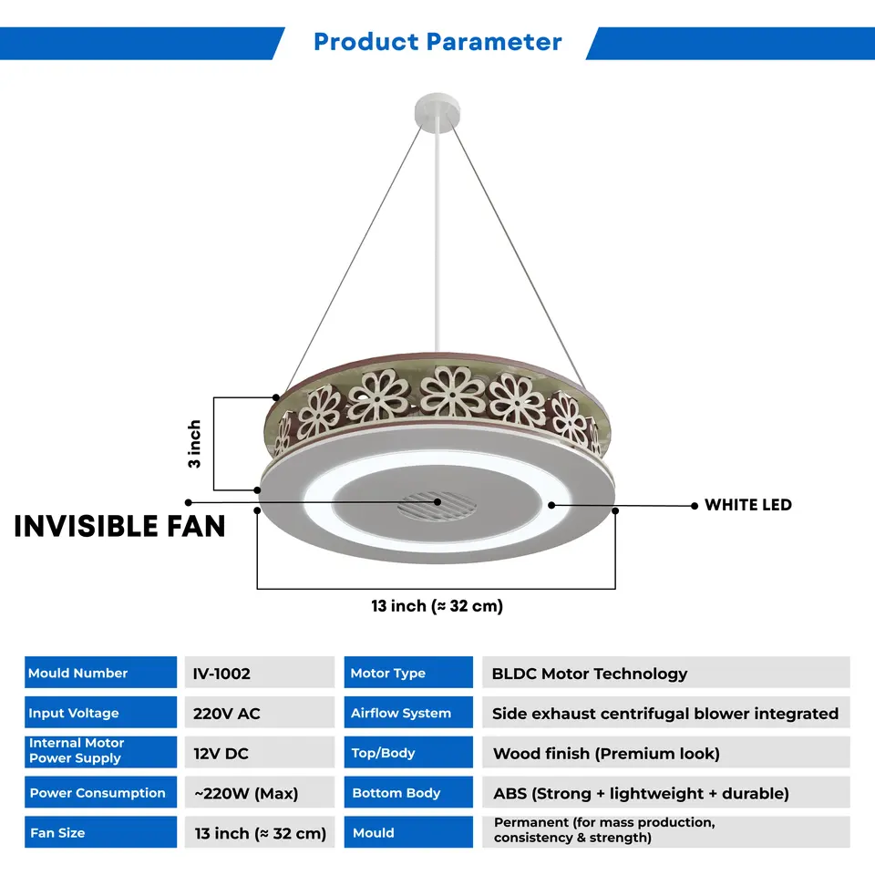 Ventilateur de plafond élégant et invisible avec technologie de ventilation silencieuse, éclairage LED sécurisé et rafraîchissant pour cuisine, salon et intérieurs modernes.