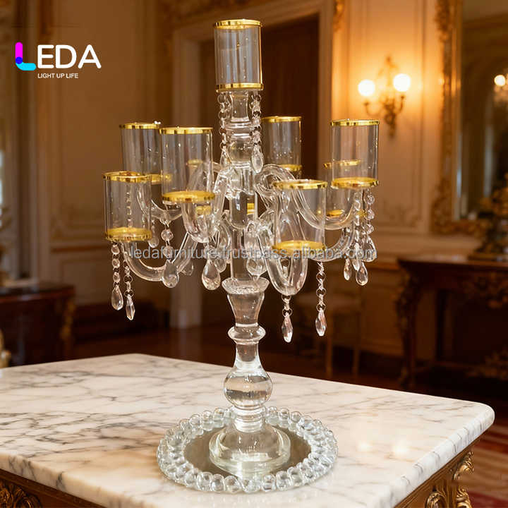 LEDA Chandeliers de mariage en cristal Cylindres en verre Décorations de centres de mariage pour banquets de mariage