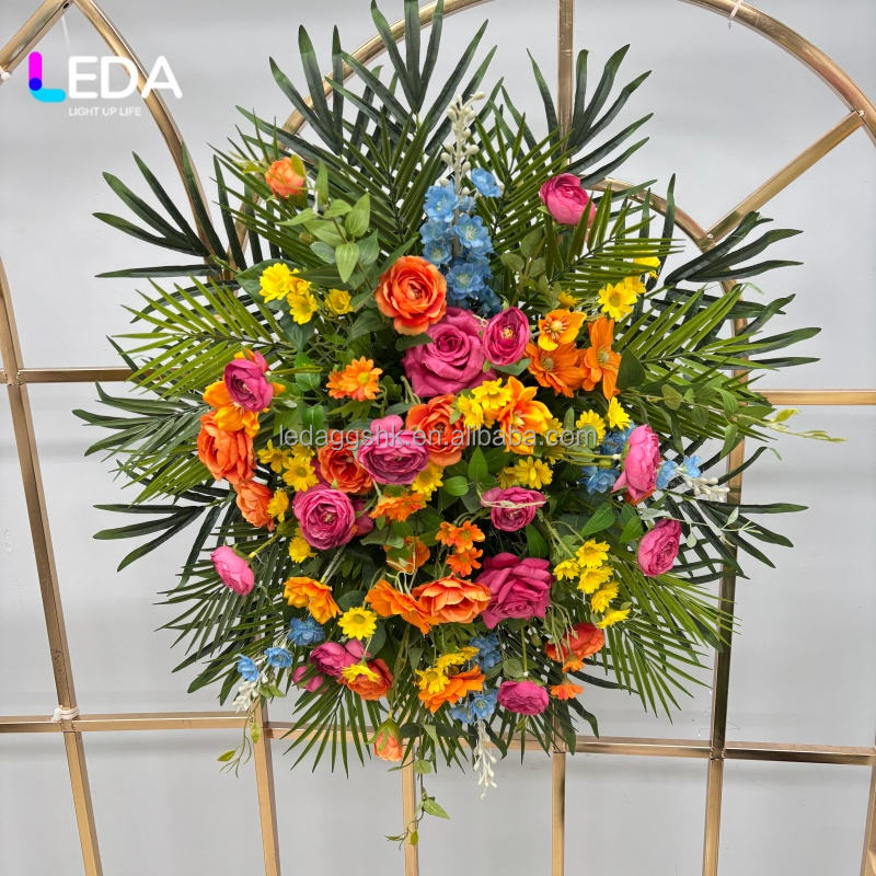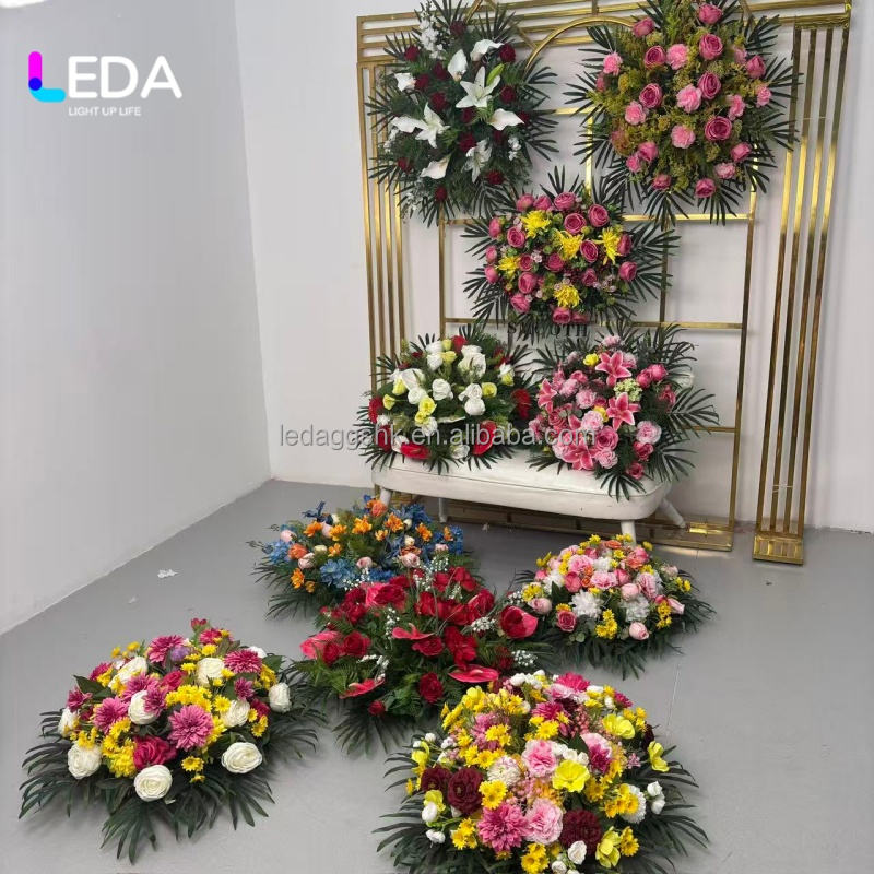 Guirlande de fleurs artificielles en soie personnalisée LEDA pour cimetière, couronne florale funéraire, arrangements floraux pour hommage funéraire