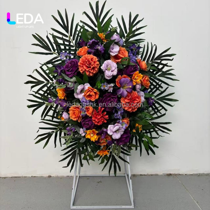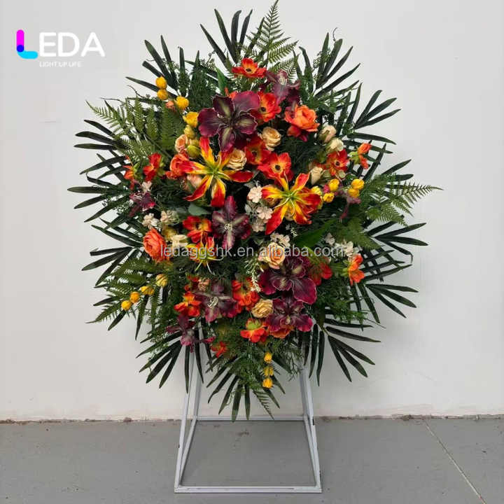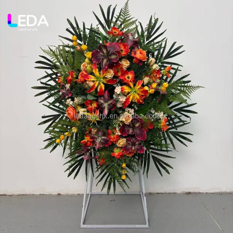 Guirlande de fleurs artificielles en soie personnalisée LEDA pour cimetière, couronne florale funéraire, arrangements floraux pour hommage funéraire
