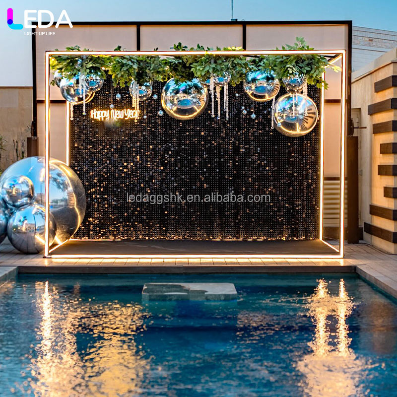 LEDA Custom Events Arche lumineuse noire pour événements et mariages, toile de fond détachable, cabine photo avec éclairage LED