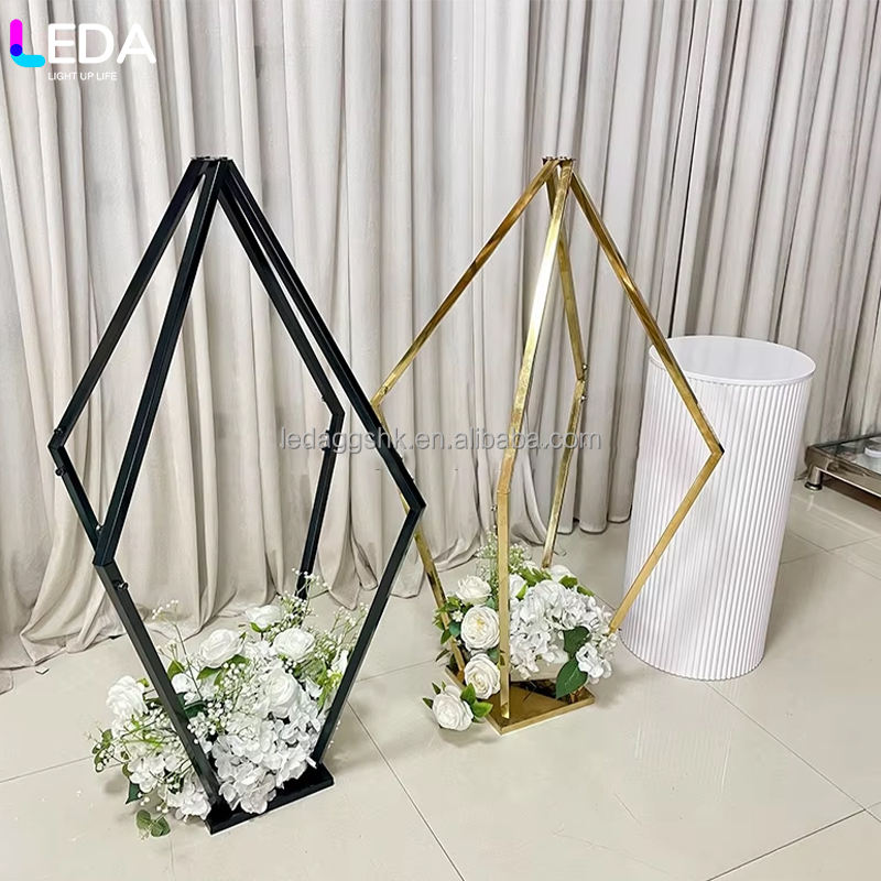 Support floral en métal doré personnalisé LEDA pour décoration d'allée de mariage, centre de table pour événements et fêtes