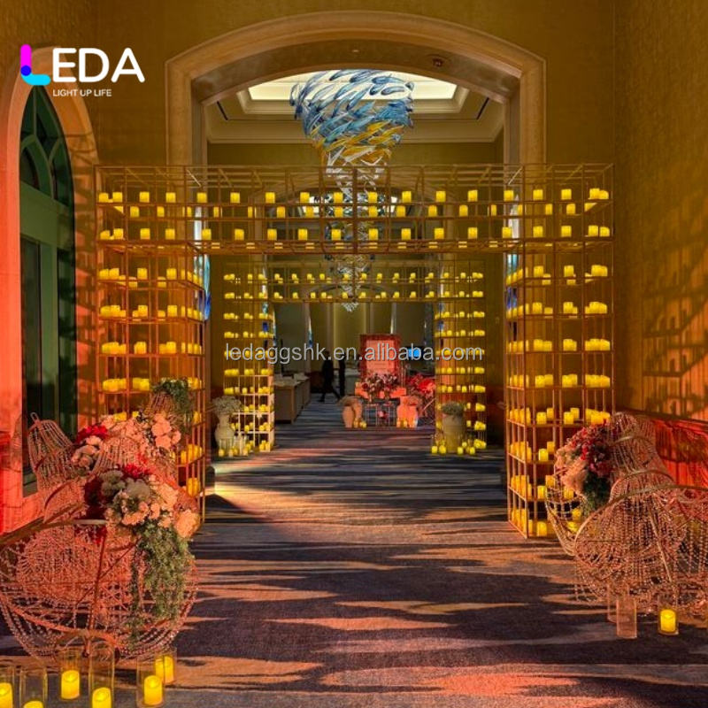 Nom du produit:Décoration de mariage avec toile de fond en métal, arche en métal, mur de bougies