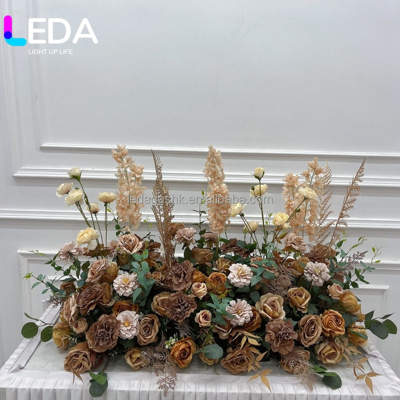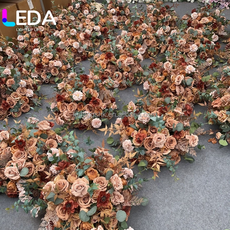 LEDA Chemin de table floral artificiel personnalisé pour mariage, arrangement floral d'automne orange brûlé pour arche de mariage, idéal pour les fêtes