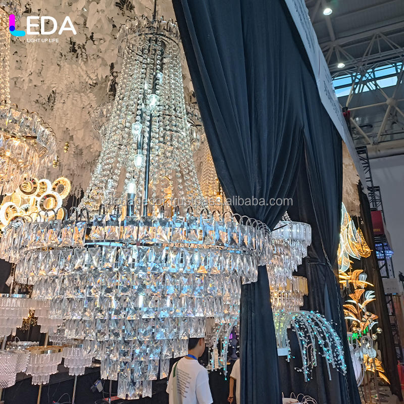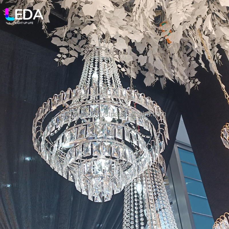 LEDA Décoration de plafond de rideau de style moderne en cristal métallique de luxe européen à plusieurs couches en forme de diamant Décoration de mariage Lumières