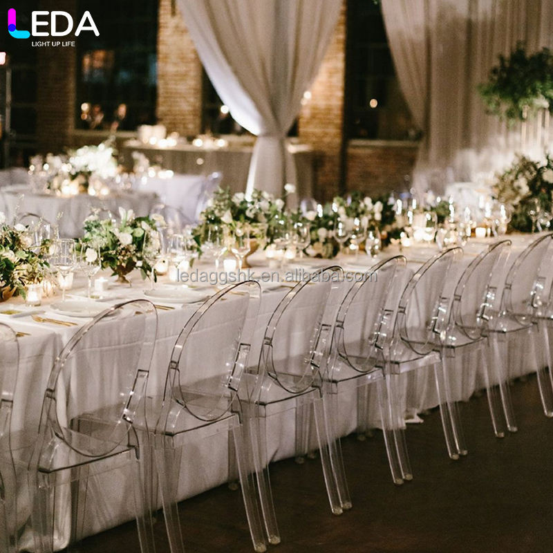 Chaises de salle à manger portables en plastique PP transparent, durables et imperméables, vente en gros par l'usine LEDA, pour la maison et les hôtels
