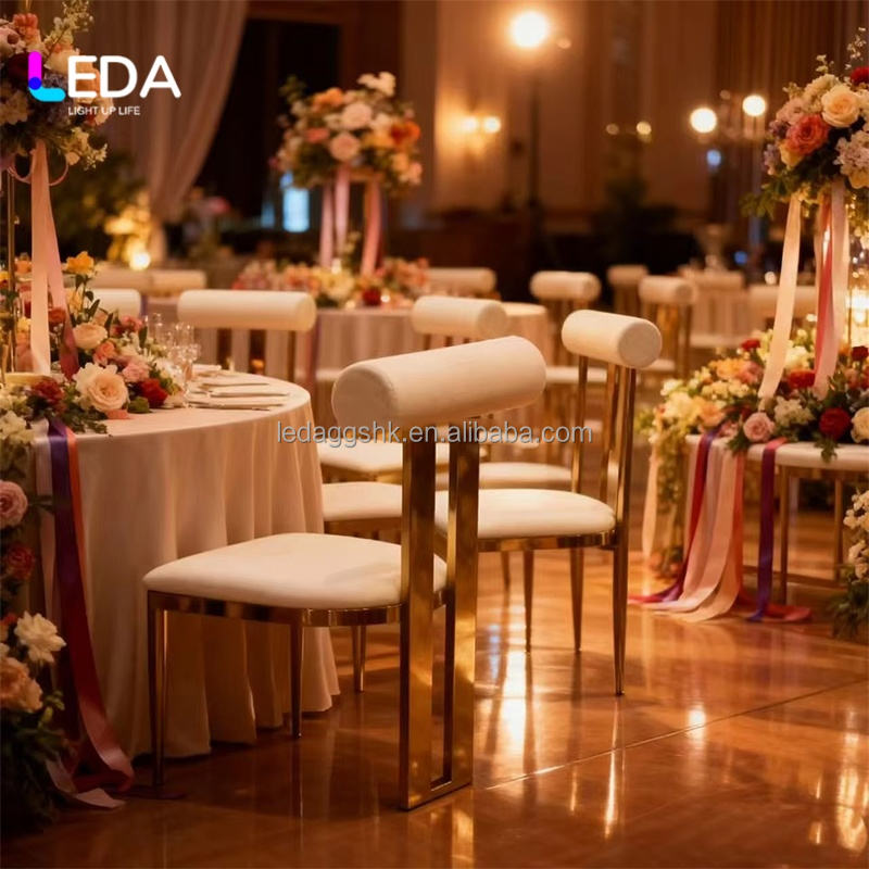 Chaises de banquet en cuir PU avec cadre doré, fabrication directe d'usine LEDA - Design moderne empilable pour les mariages, les hôtels, les événements, utilisation intérieure/extérieure
